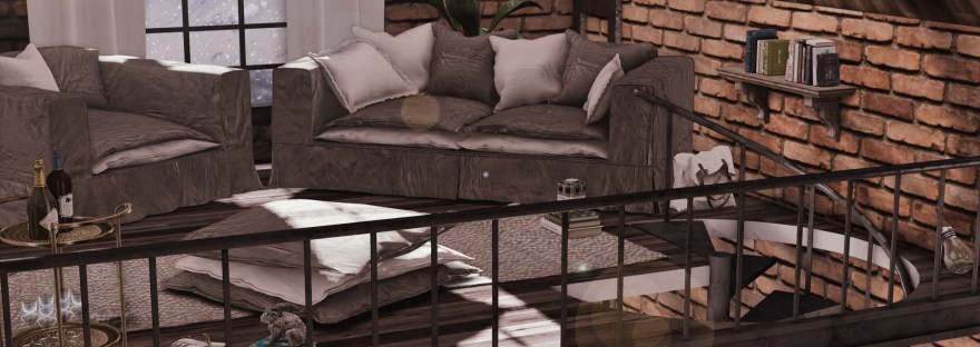 A small industrial-style cabin consisting of a large open space and with a spiral staircase leads to a mezzanine. In case you prefer not to climb the stairs or your avi is too high are inclused two teleports.