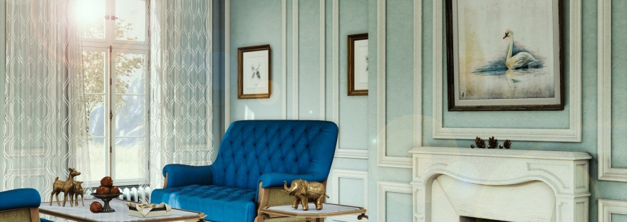 A living room set designed to pair wonderfully with Marais Apartments, consisting of a deconstructed French settee available in 3 upholstery options, and a matching set of distressed walnut tables with glass surfaces. Upholstery options for the settee include: white muslin which can be tinted to your hearts desire; classic blue; and blue floral, a hand-painted floral design coloured in Classic Blue, the Pantone Colour of the Year 2020 – perfect to take you into the new year in style.