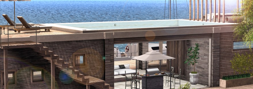 The floor version as an add-on to the Hillside House. It’s made up of one level with two rooms on either side of the open space. The roof top contains a decorative pool only, as a space to enjoy for entertaining.